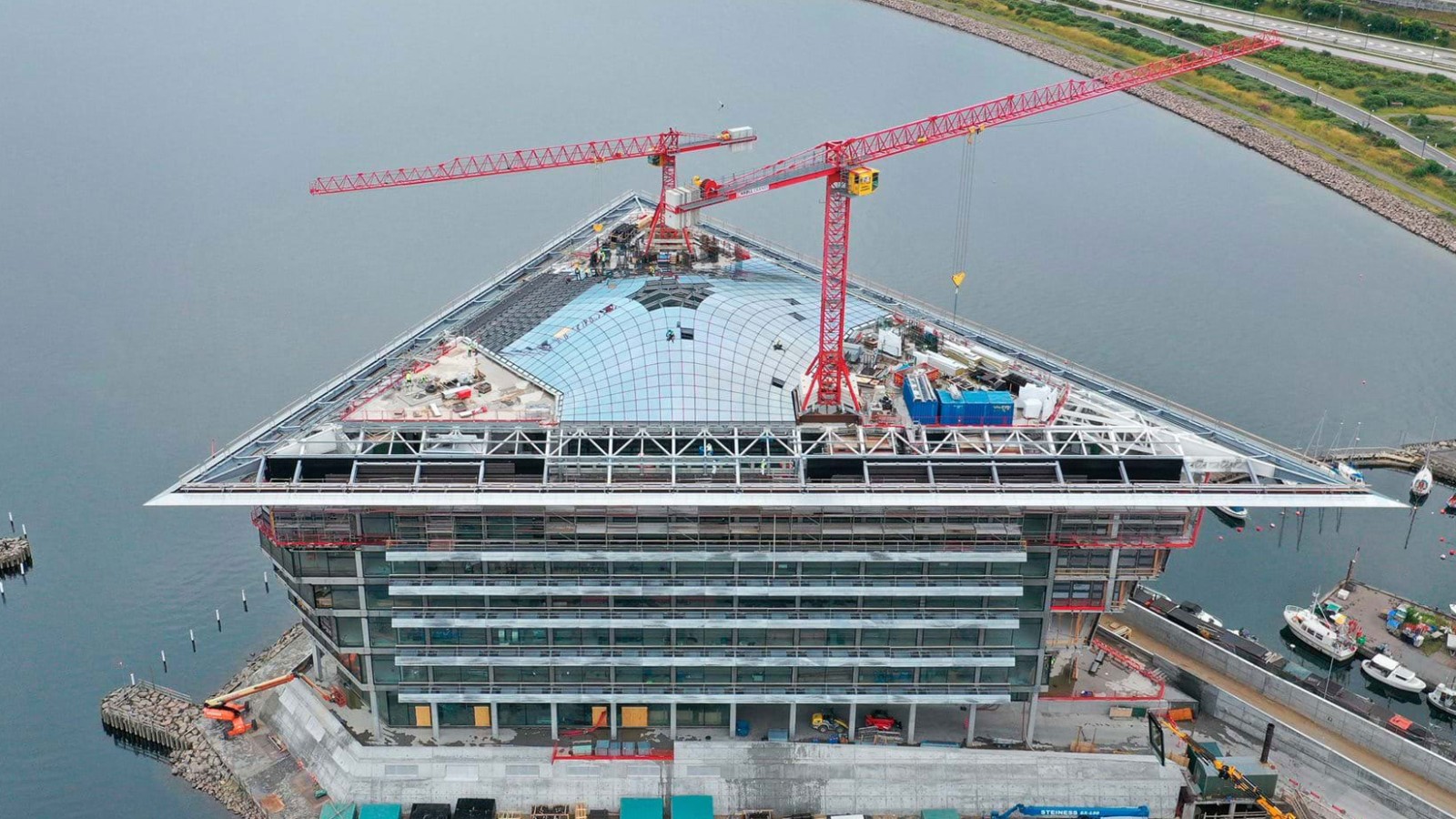 L’imposante façade en verre offre une vue panoramique à couper le souffle sur le détroit d’Öresund, entre Copenhague au Danemark et Malmö en Suède. La lumière naturelle qui pénètre avec facilité à l’intérieur inonde hall d’entrée, bureaux, cafés et salles de conférence.