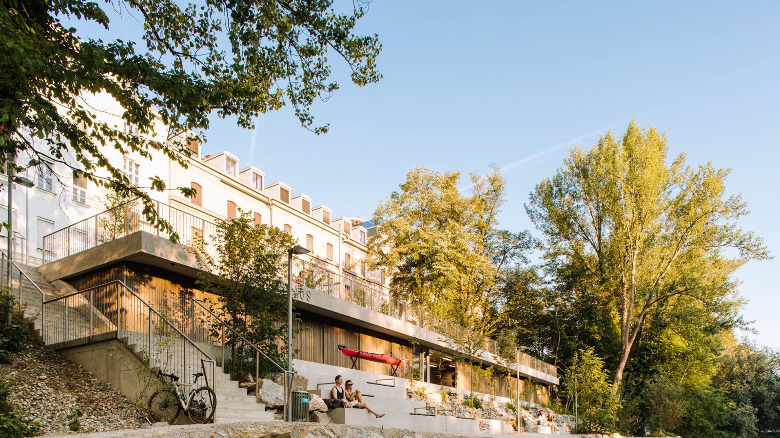 Le concept prévoit de promouvoir activement la mobilité des visiteurs. Des places de stationnement pour vélos à proximité immédiate du bâtiment invitent à utiliser des moyens de transport respectueux de l’environnement. Le site abrite des canoës, des kayaks et d’autres embarcations. Il offre aux associations sportives et au public un espace d’activités et de détente, où sont organisés des entraînements et des événements sportifs ainsi que de petites fêtes.